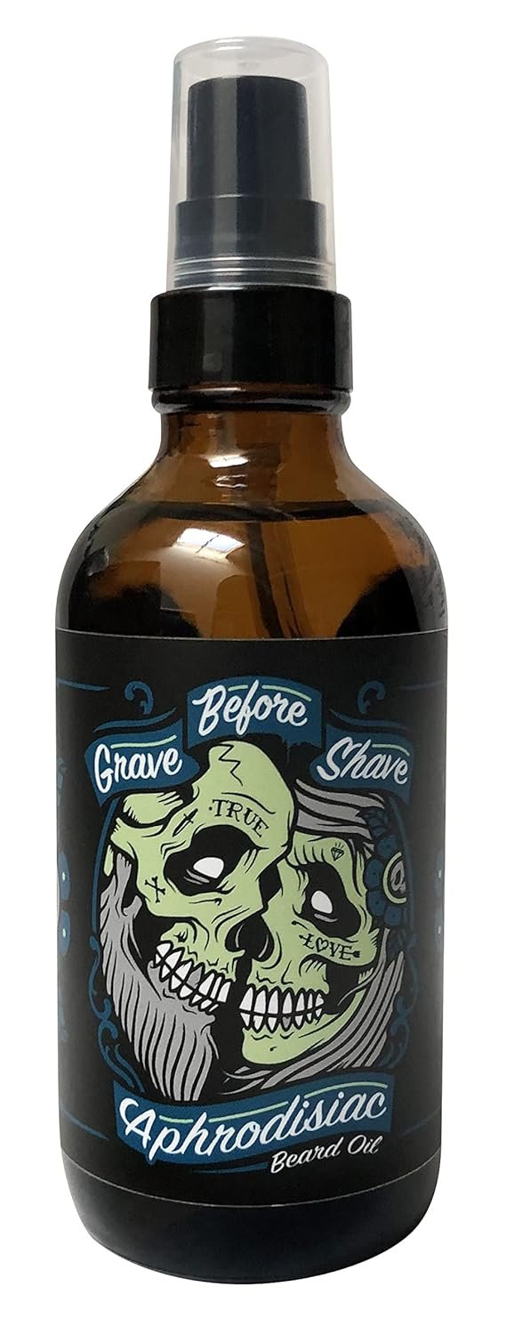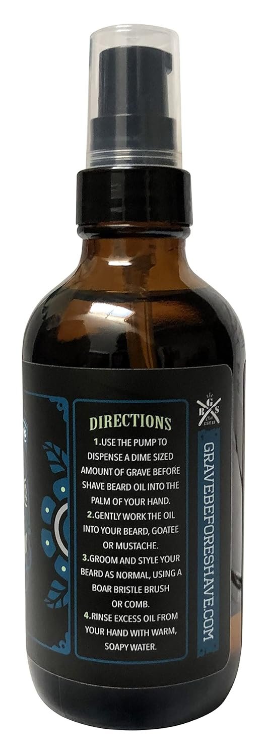 Discover the rich, masculine scent of Grave Before Shave Leather/Cedar-wood Beard Oil, a premium grooming essential. This 4 oz. big bottle, featuring a convenient pump-top dispenser, is crafted with all-natural ingredients to nourish your beard and the skin beneath.